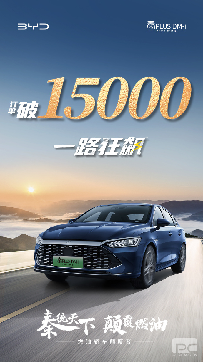 比亚迪汽车官方今日上午公布的数据显示,秦 PLUS DM-i 2023 冠军版上市三天订单破 1.5 万。