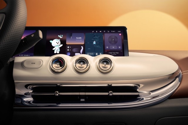 中控台采用大屏和空调面板整合式设计,搭配双10.25英寸悬浮高清大联屏。除此之外,新车座椅设计遵循人体工学,采用一体式头枕,大面积软包覆材料提升舒适感;竖向绗缝配合打孔皮纹,提升座椅透气性。