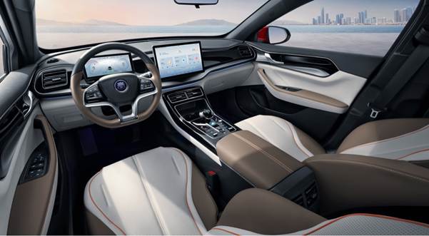 内饰方面,新车新增暖阳棕内饰,同时座椅采用打孔工艺的一体化运动座椅,配合包裹性更好的舒压云朵座垫,驾乘更舒适。此外,秦PLUS EV 2023冠军版升级了8.8英寸全液晶仪表,显示信息全面、内容丰富,搭载DiLink 4.0智能网联系统,可下载丰富的应用程序。