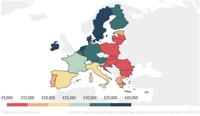 来自欧洲汽车制造商协会(ACEA)的调查,2022年欧洲卖出的新车,电动汽车虽然占21.6%,但在超过一半的欧盟会员国里,电动汽车的市场占比仅9%甚至更低,主要集中在中欧、东欧与南欧,这里的平均年收入仅13000欧元,捷克的电动汽车市场占比更只有 3.9%。