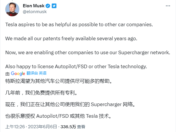 马斯克在2014年的一篇题为“我们所有的专利都属于你”的推文中宣布了这一消息,他在文章中说明了向其他人开放特斯拉知识产权的理由。