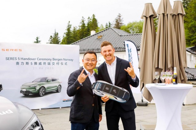6月21日,赛力斯SERES 5欧洲首批用户交付仪式在挪威卑尔根弗洛伊恩山举行,赛力斯集团轮值董事长、总裁张正萍,海外事业部常务副总经理、SERES EUROPE B.V.总经理万治军及经销商代表等现场出席,共同见证这一里程碑时刻。
