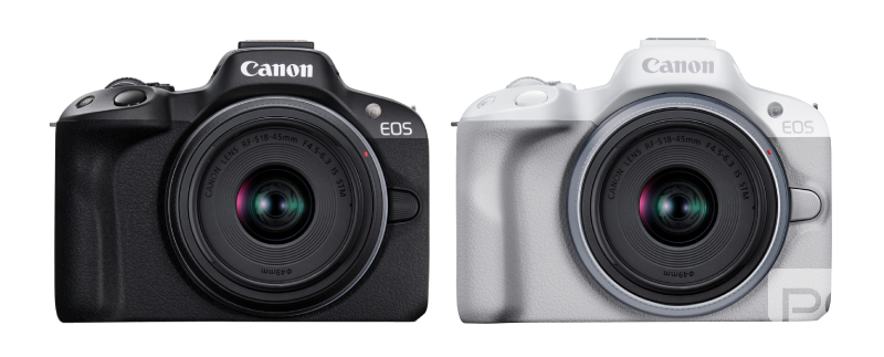 EOS R50 有黑色和白色两种机身颜色,机身小巧轻量、便于携带,白色机身重约 329 克,黑色机身重约 328 克。