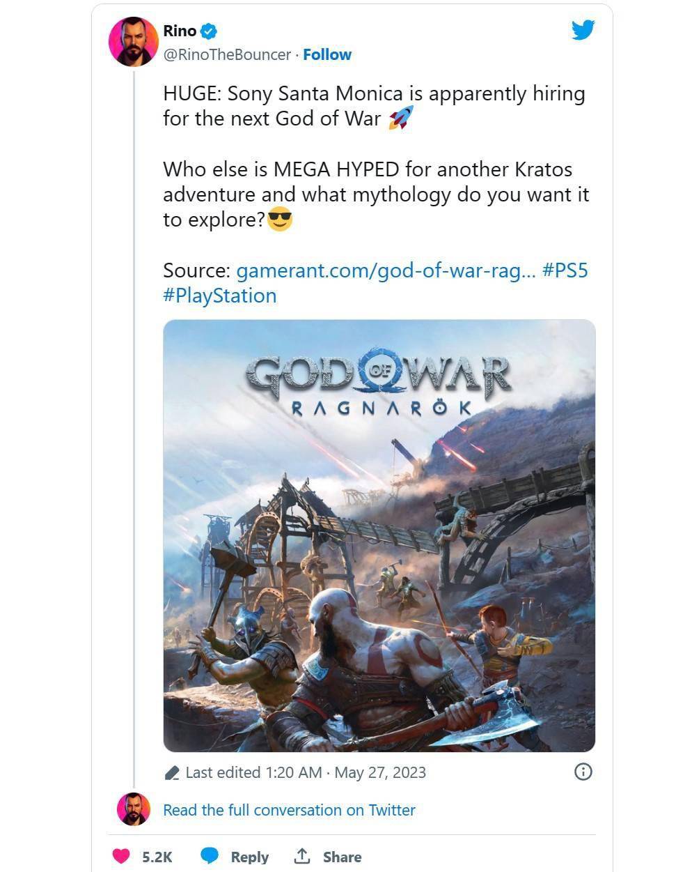 索尼圣莫尼卡工作室的招聘指出理想的申请人应具有“4年以上的游戏开发经验”和“战神(2018)和战神诸神黄昏(2022)的知识”。