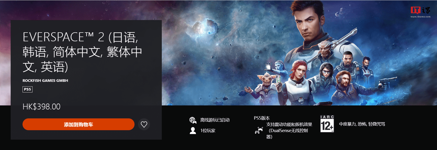 据了解,《永恒空间 2》PS5 版港区售价 398 港元(当前约 370 元人民币),支持中文。