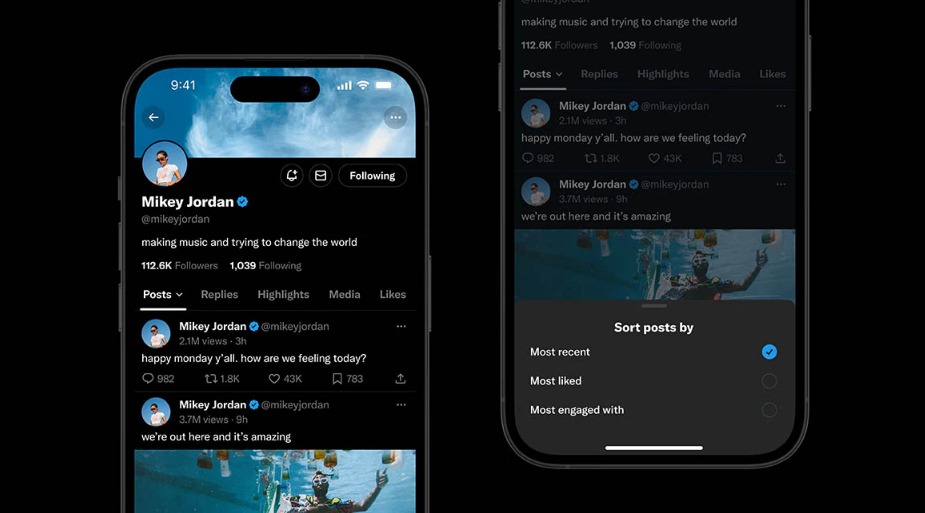 X(推特)正在开发一项新功能,允许用户对某人个人资料上的帖子进行排序。
