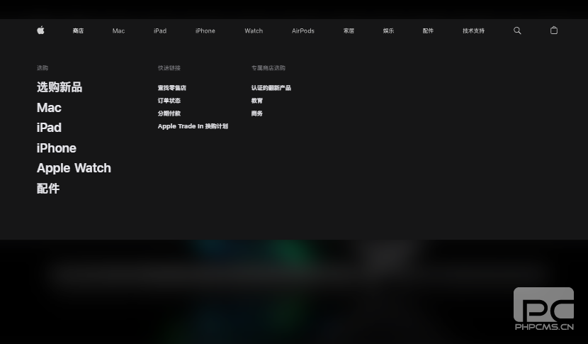 IT之家发现,在新的桌面版苹果官网中,当把鼠标悬停在顶部菜单栏的类别上时,会出现新的下拉菜单,这些菜单栏中的类别包括商店、Mac、iPad、iPhone、Watch、AirPods、家居、娱乐、配件、技术支持、搜索和购物袋。其中娱乐是新的类别,取代了之前的“Only on Apple”,内含 Apple Music、Apple 播客、App Store 等苹果服务。