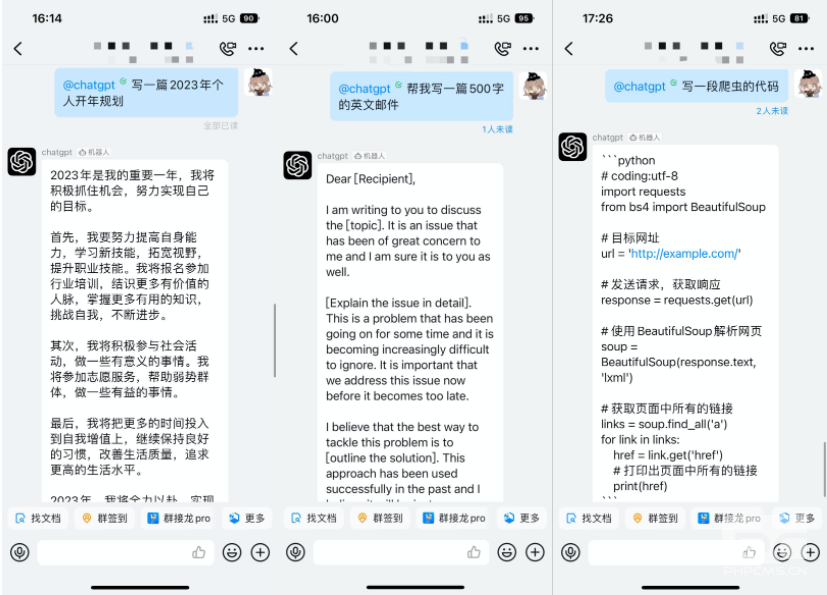 钉钉近期还表示,有用户已把 ChatGPT 机器人搬上了钉钉。在钉钉中,可自定义创建一个 ChatGPT 机器人(需自行开发)。