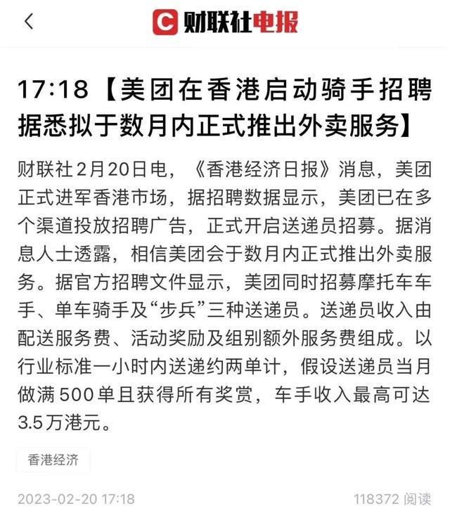 现在,中国的互联网公司出海已经成为行业共识。去年10月,美团就开始在招聘香港工作人员,有不少媒体报道美团要进军香港市场,成为其全球化的重要“跳板”。据《香港经济日报》,美团现已正式进入香港市场,已在多个渠道发布招聘信息,计划于数月内推出外卖服务。