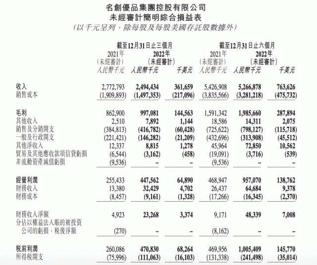 具体来看,来自中国的收入为15.08亿元,2021年同期则为20.56亿元,同比减少主要由于12月份季度疫情在中国反弹,导致由名创优品品牌产生的收入从18.68亿元减少至13.86亿元。