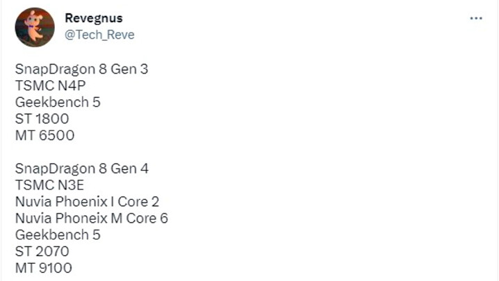 不过爆料者@Tech_Reve的Tweet最引人注目之处,却是Qualcomm放弃使用ARM的处理器核心架构的决定,他声称高通骁龙 8 Gen 4将会开始采用自行研发的Oryon核心。 @Tech_Reve 指高通骁龙 8 Gen 4 将会有两个 Nuvia Phoenix 性能核心和六个 Nuvia Phoenix M 效率核心组成,多核心性能因此获得最多 40% 的提升。