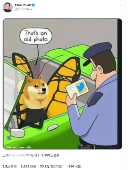 据悉,在推特蓝鸟标志换成狗头后,马斯克发布了一个去年3月与网友的互动截图,并表示:“正如所承诺的”。去年3月,马斯克在推特上问道:“是否需要一个新平台?”有网友评论称,买下推特并把蓝鸟标志换狗头。马斯克回复称:“哈哈,那太恶心了”。同时,他还发布了一则打趣推特新头像的“表情包”。