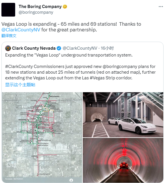 本周三,埃隆·马斯克旗下的Boring公司获准扩建拉斯维加斯环路,允许将隧道扩大25英里,新增18个车站。