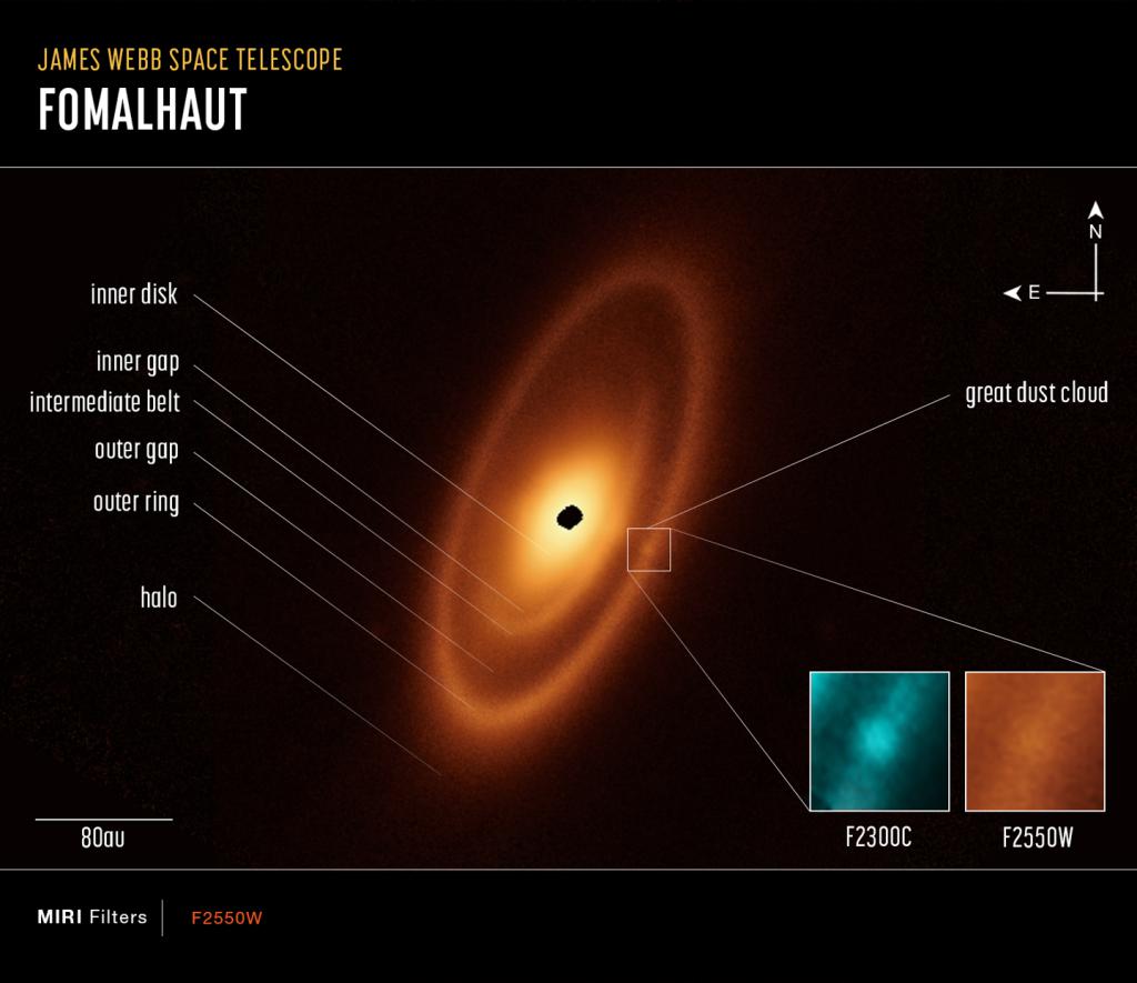 科学家公布韦伯太空望远镜的观测影像,显示银河系的明亮恒星北落师门周围有类似特征的新细节,观测到有3个由尘埃组成的碎片同心环,围绕着北落师门恒星运转,提供了迄今关于太阳系外这类结构的最完整景象。