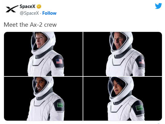 这是公理太空公司规划的私人任务公理2号(Ax-2),成员当中最受注目的是沙国乳癌研究人员巴纳威(Rayyanah Barnawi),她是首位上太空的沙乌地阿拉伯女性,先前巴纳威在记者会上表示,非常高兴也很荣幸,能成为第一位代表沙地阿拉伯的女性太空人。