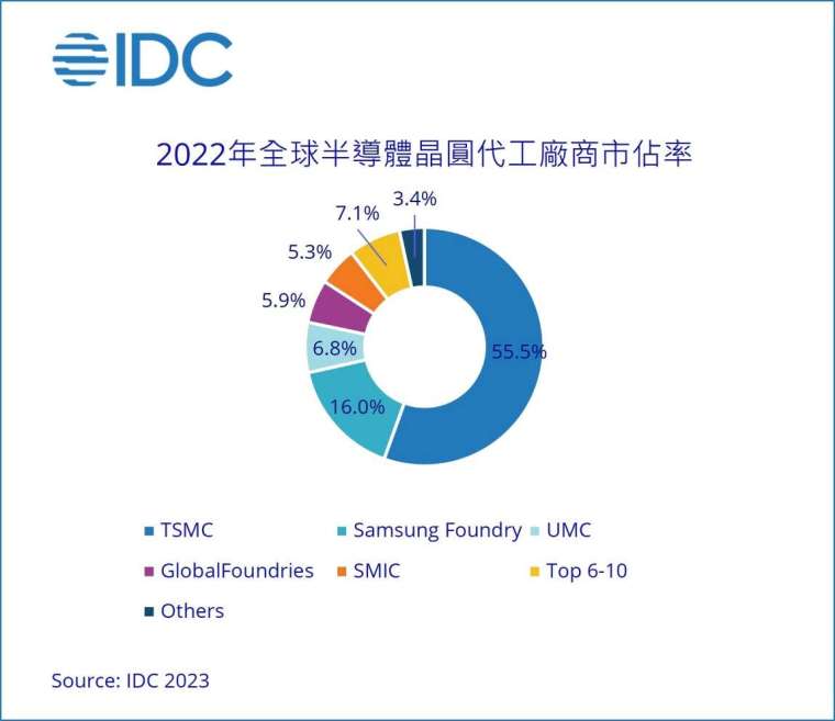 报告称,回顾2022年,晶圆代工产业表现相当亮眼,前十大厂商依序为排名前十的半导体代工厂商包括台积电、三星、联电、格罗方德、中芯国际、华虹宏力、力积电、世界先进、Tower、Nexchi。 领先厂商台积电凭借先进工艺的不断演进,市场份额从2021年的53.1%增长到2022年的55.5%,在近期3/4/5nm投片量逐渐提升的推动下,预计2023年将继续提高市占。