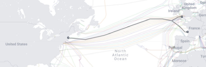 跨大西洋电缆系统是第一个直接连接美国波士顿和欧洲、法国波尔多和北美的电缆系统,在美国马萨诸塞州林恩、英格兰威德茅斯湾和法国勒波尔日登陆。该电缆将着陆在波尔多的一个新的Equinix数据中心。