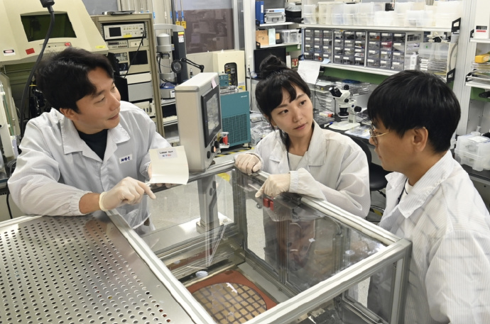据悉,该技术是“最先进的半导体芯片封装技术”,可“比日本现有技术节省95%的功耗”,且“工艺流程从9个步骤减少到了3个步骤”——在半导体晶片上粘贴ETRI开发的新材料制作的非导电薄膜(NCF)后,用面激光照射1秒左右,将长得像瓷砖的晶片进行固化。以尖端封装技术为基础的芯片组是将芯片像乐高积木一样组成半导体基板的概念。