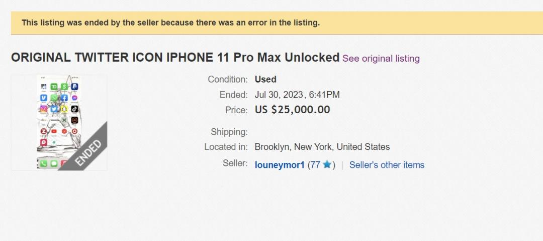 推特陆续撤下旧标志,包括苹果App Store也已改为X,iPhone只要更新推特 App就会变成X,因此也有人放弃升级,就是为了让手机保持蓝鸟Logo的推特,eBay陆续出现这样的二手iPhone被网拍,且都要价不菲,外媒wccftech报道,甚至有卖家开出高达2.5万美元的价格,不过该拍卖页随后遭eBay删除,已经找不到。