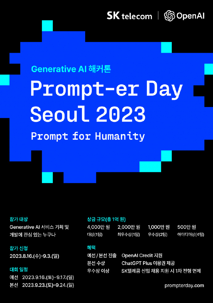 SK电信和OpenAI计划,对通过此次大赛涌现出的优秀创意共同进行服务开发和商用化。