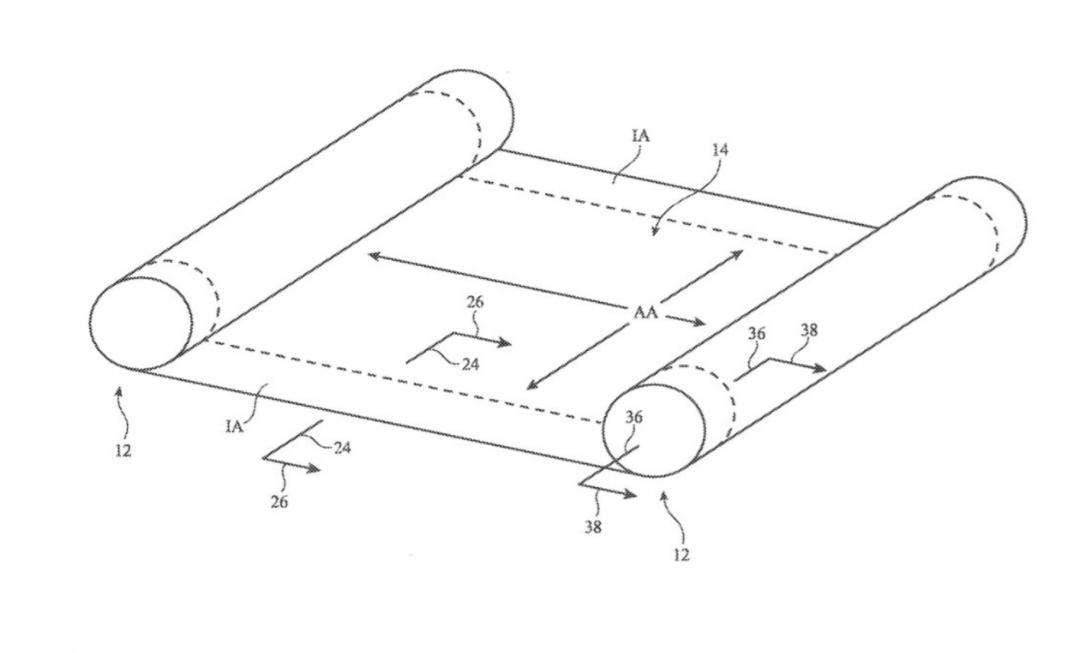 苹果新专利,让柔性屏幕宛如画卷。 (图/翻摄网络)