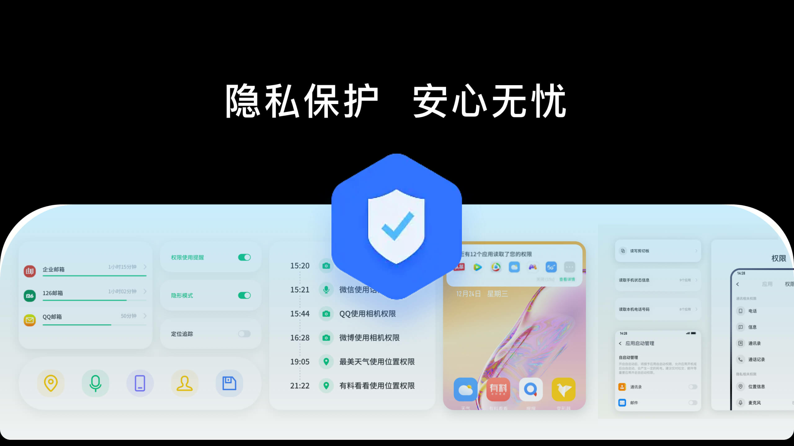 Freeme OS 15.0始终将用户隐私保护视为产品的安全基线,在构筑全面终端安全架构的同时,进行了大量安全和体验性的功能创新,确保为用户提供端到端的安全保护。 在Freeme OS 15.0上配备照明弹、模糊定位、内容访问保护、卡包证件水印保护等,实现对多个敏感权限可知可控的保护功能,守护机主的隐私空间不被侵犯。