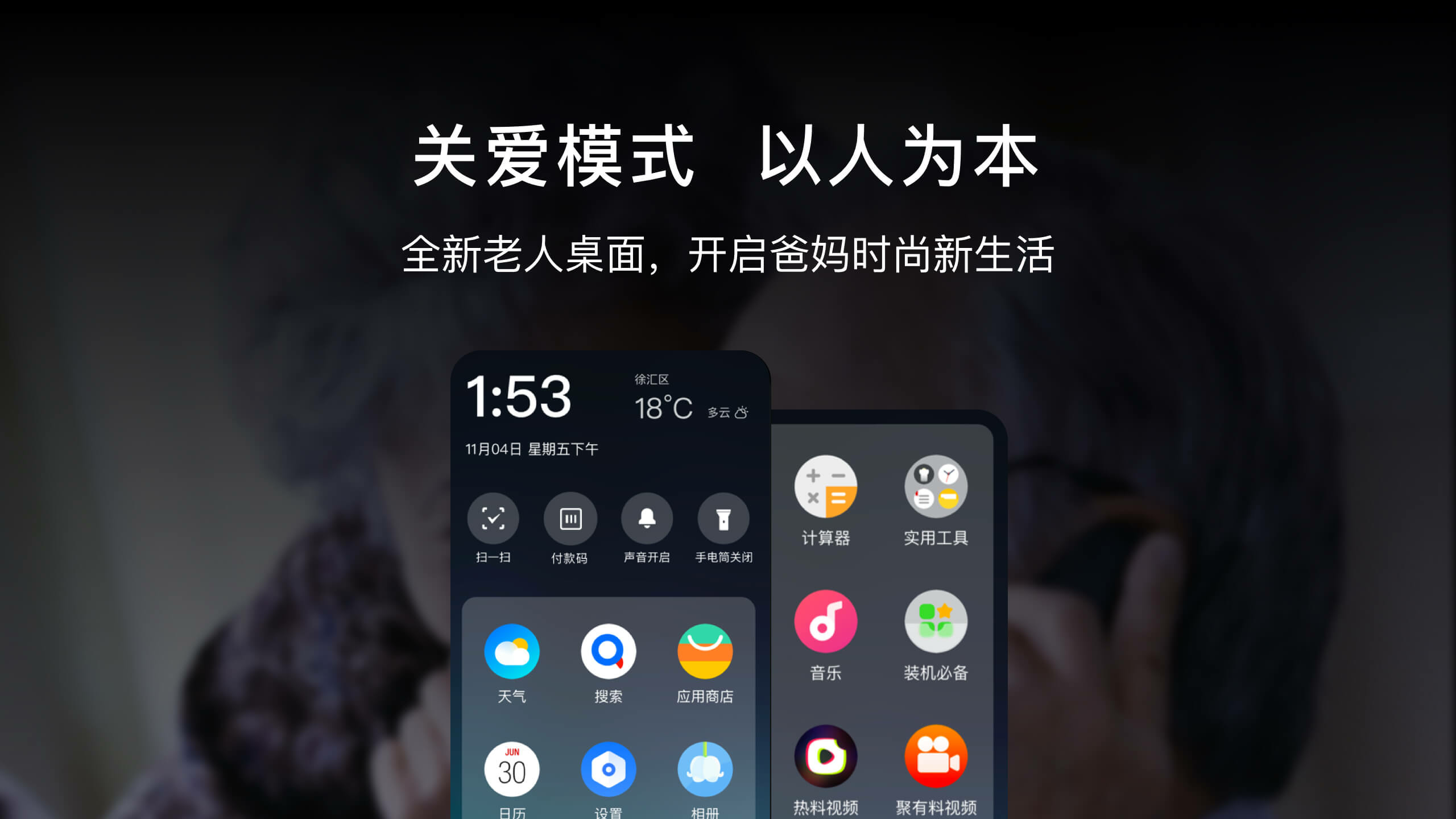 科技在进步,Freeme OS 15.0不让任何一个人掉队。针对符合老年人群使用习惯和感官审美定制了的全新老人桌面,设计出专属大字体大图标,简化了界面布局;为提高老人桌面的易用性和可操作性,Freeme OS 15.0以电短联行为互动为核心,操作更简单易用。