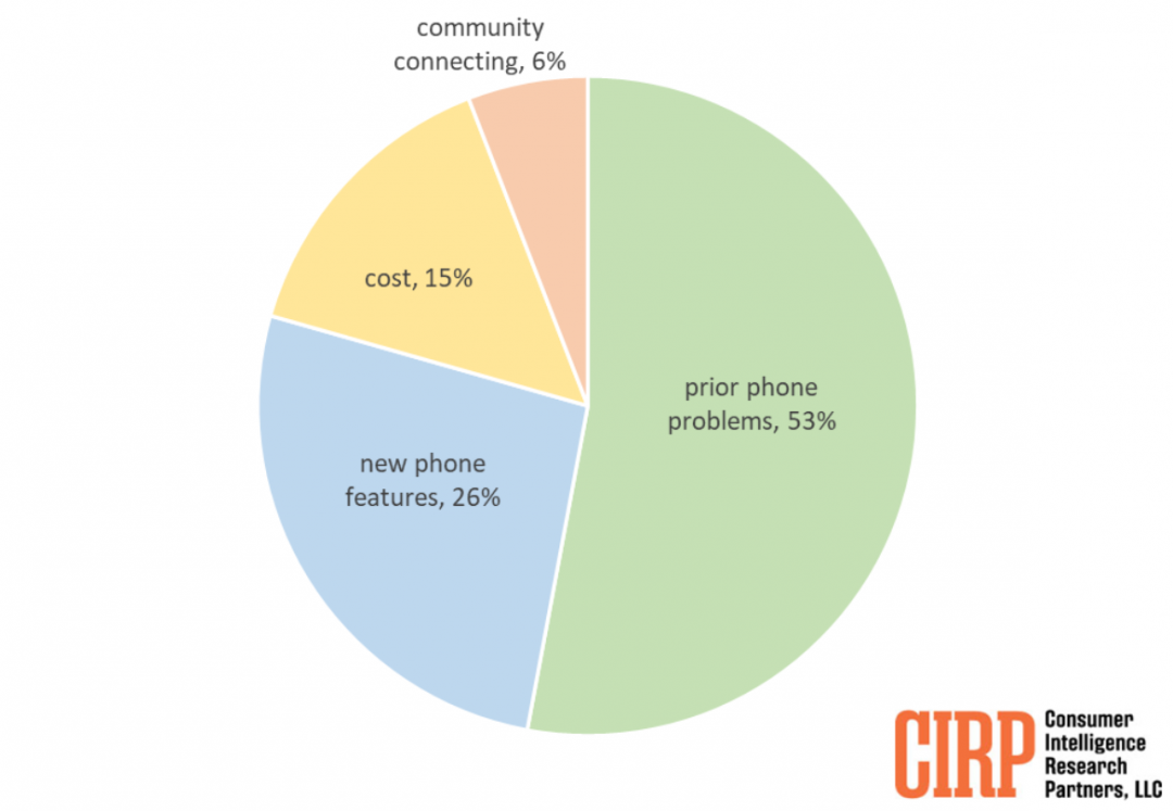 CIRP 报告统计,美国用户从 Android 手机改用 iPhone 的最大原因,有超过半数(53%)受访者指出,是因为前一代手机的问题才更换,包含太过于老旧、需要维修,或者有明显的缺陷导致体验不佳。 至于有 26% 是被 iPhone 的功能所吸引,像是寻求更好的相机、更多配件选择以及 iOS 的操作界面。