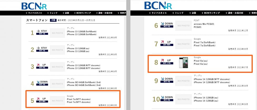 观察BCN近期发布的五月手机销售榜单,可以发现到谷歌最新上市主打中阶防水与拍照特色的Pixel 7a ,一开卖就窜升至前十大热销手机榜单,跃居日本最热销安卓手机的人气王。
