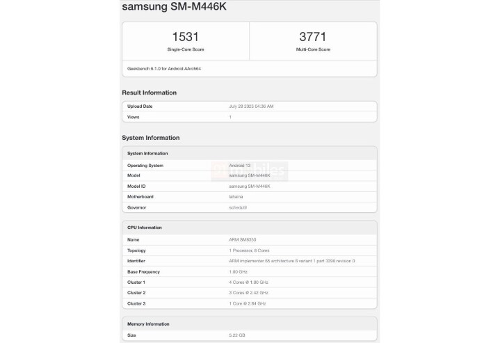 日前有外国传媒发现于跑分网站 Geekbench,出现了一款相信是 Galaxy M44 的跑分成绩,最让人始料不及的并非有未发布新机在 Geekbench 现身,而是该部送测 Galaxy M44 手机的规格配置。