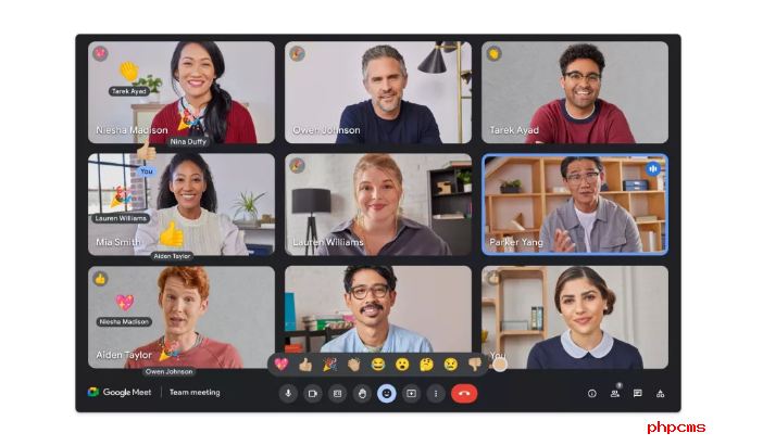 谷歌昨日透露,它将在会议体验中引入一系列表情反应,用户可以在会议期间使用表情符号。谷歌表示,这些表情“基于参与度而爆发,当几个人连续使用同一表情符号时,会产生更多的强调。”你还可以选择不同的肤色。