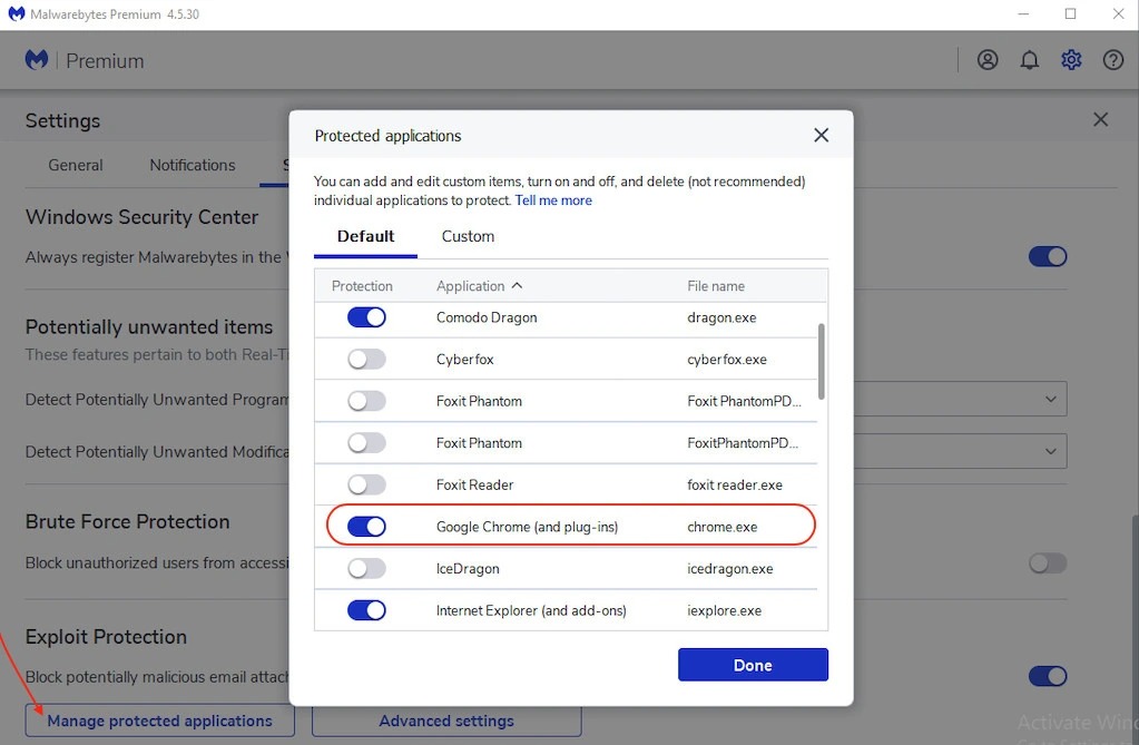 Malwarebytes 官方表示收到多起用户跟他们回报这个问题,临时解决方案包括:尝试将 Chrome 设定为默认浏览器用户到 Malwarebytes 产品中的「设置」->「安全」选项卡,在受保护的应用中取消勾选 Chrome 浏览器。