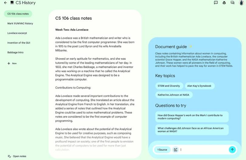 NotebookLM 与传统的人工智能聊天机器人之间的一个关键区别在于,NotebookLM 允许您将语言模型“植入”到您的笔记和资料中,能够围绕来源基础(Source-grounding)有效地创建一个对与您相关信息了如指掌的个性化 AI。从今天开始,您可以在您选择的特定谷歌文档中建立 NotebookLM,我们将很快添加其他格式。