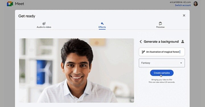 过去几年人们已经习惯以即时通讯软件开会,当中颇受用户欢迎的谷歌 Meet不断添加新功能,例如提供1080p高清画质、全新画中画模式、令搜索和加入影片特效变得更容易等。 日前谷歌又开始测试新功能,今次还将近期大热的人工智能文字转图像加入。