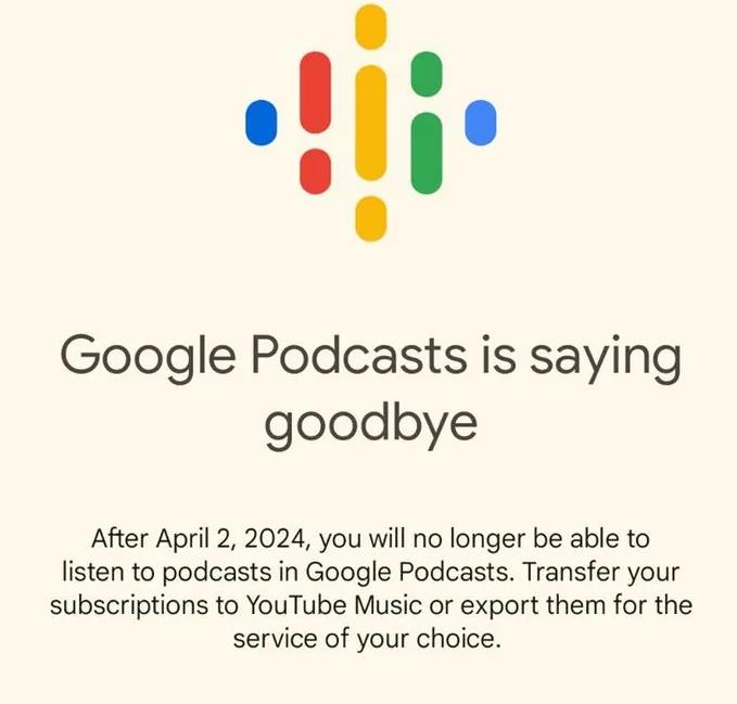 在一份最新公告指出,Google Podcast 将从今日起在美国停止使用,民众无法再借由该App 收听节目,美国市场以外则预计在6 月24 日全面停止支持,后台服务Google Podcasts Manager 则会在7 月29 日终止。